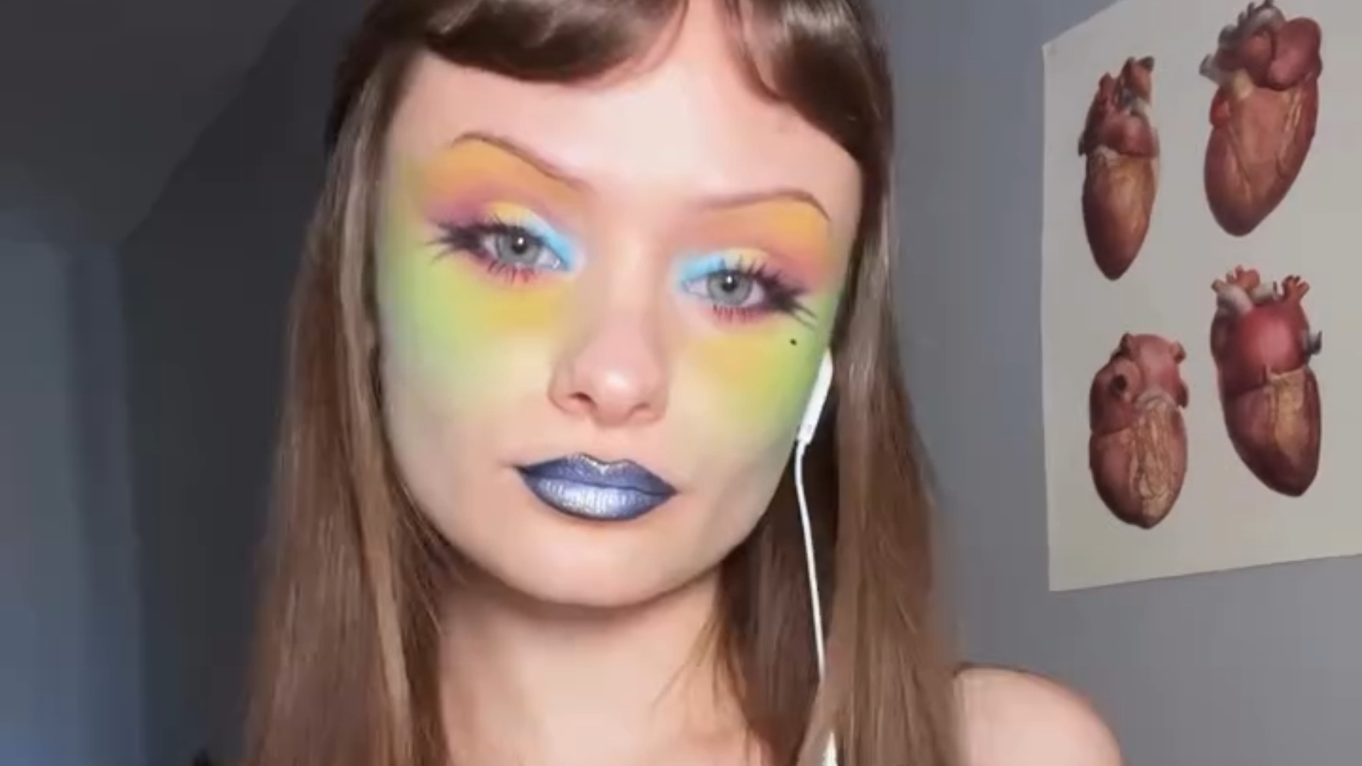 Du vert en guise de blush et du bleu autour des lèvres, sa mise en beauté paraît clownesque à première vue. Pourtant, son partenaire ne voit pas un look carnavalesque, mais une femme parfaitement apprêtée. En couple avec un homme daltonien, qui ne voit pas le monde de la même couleur, cette beauty addict a inversé son makeup pour les yeux de son chéri.