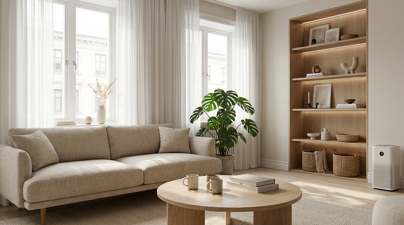 Pour passer de l’inspiration aux mètres carrés, la première étape reste le tri. Le lagom propose de réduire l’encombrement, sans tomber dans le vide glacial du minimalisme. On garde ce qui sert vraiment ou ce qui compte affectivement, le reste sort de la pièce. Les décorations deviennent intentionnelles : quelques pièces de caractère, des textiles confortables, deux ou trois plantes bien placées. Suffisamment pour que la maison reste vivante, pas au point d’étouffer.