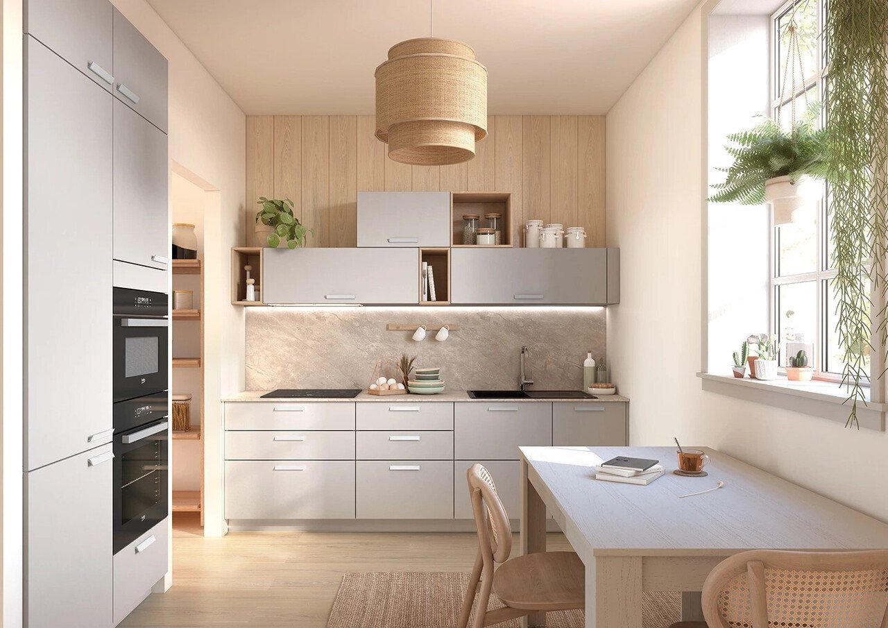 Remplacer le carrelage par du bois traité, c'est faire le choix du style. Dans une cuisine ouverte, habiller un mur avec ce matériau peut permettre de créer une belle continuité avec le salon ou la salle à manger. Vous pouvez aussi l'associer à une peinture mate ou à des tons neutres, d'apporter un contraste moderne et élégant. L'autre gros atout du bois traité, c'est qu'il n'alourdit pas visuellement votre pièce. Combiné à des surfaces claires et mises en valeur par la lumière naturelle, vous ajouterez une impression de confort et de chaleur à votre cuisine. C'est une astuce particulièrement recommandée pour les petites pièces.